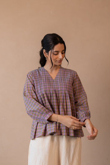 Pleated top made from lightweight cotton fabric