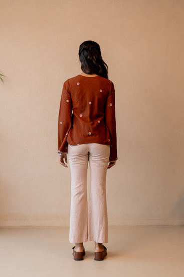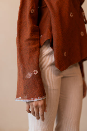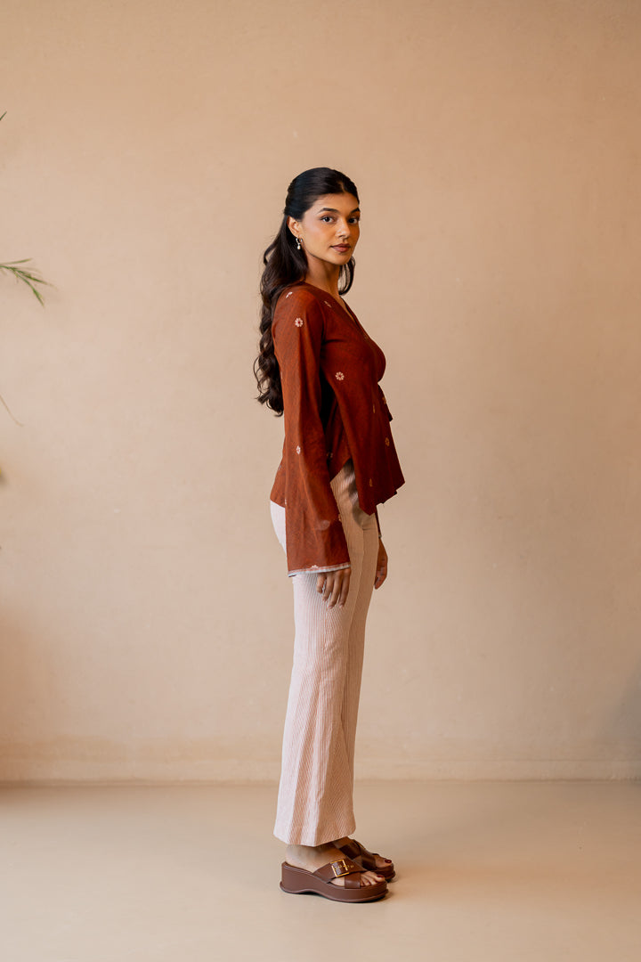- Flared trousers made from pure handwoven cotton in brown – beige stripes